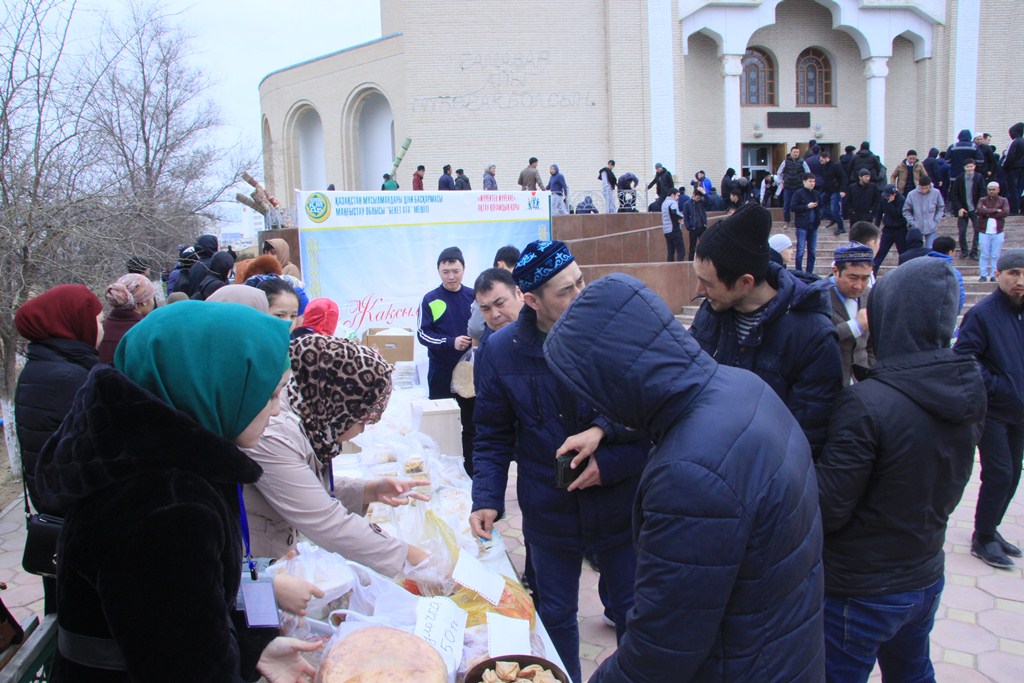 Жұма намазына келген жамағат жәрмеңкеге шығарылған тәтті және ыстық тағамдарды сатып алу арқылы қайырымдылық іске өз үлестерін қосты.