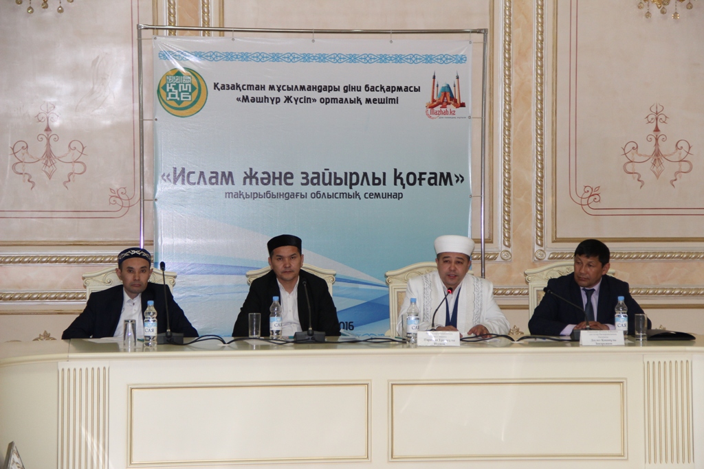 Қазақ халқы ғасырлар бойы ұрпақтан-ұрпаққа жалғасып келе жатқан ата діні – Исламды саналы түрде жүрек қалауымен қабылдады. Байтақ даланың тұрғындары рухани негіздерін Исламнан тауып, діннің адамгершілік құндылықтарын бойына сіңіріп, салт-дәстүріміз бен әдет-ғұрыптарымызды байыта түстік. Сондықтан да біздің семинар-конференцияға қатысушылар облысымыздағы мұсылман үмметін, Ислам ғалымдарын, қоғамдық сарапшыларды, жалпы халықты ортақ мәзһабымыздың мәртебесін көтеріп, қоғамда тыныштық орнатуға, террористік әрекеттерге тосқауыл болуға, жалпыға ортақ адамгершілік құндылықтардың насихатталуына, тарихи дінімізді келесі ұрпаққа дұрыс жеткізуге, ортақ мәдениетіміз бен дәстүрімізді жаңғыртуға белсенді үлес қосуға шақырамыз. Еліміздегі зиялы қауым өкілдерін, тарихшы-ғалымдарды, қоғамдық әрі діни сарапшыларды Қазақстан мұсылмандары діни басқармасының 2016 жылды «Дін және тарих тағылымы» деп жариялаған идеясын жан-жақты жүзеге асыруға, тағылымға толы тарихымызды жалпы халық арасында насихаттауға шақырамыз-деп сөзін бітіреді.