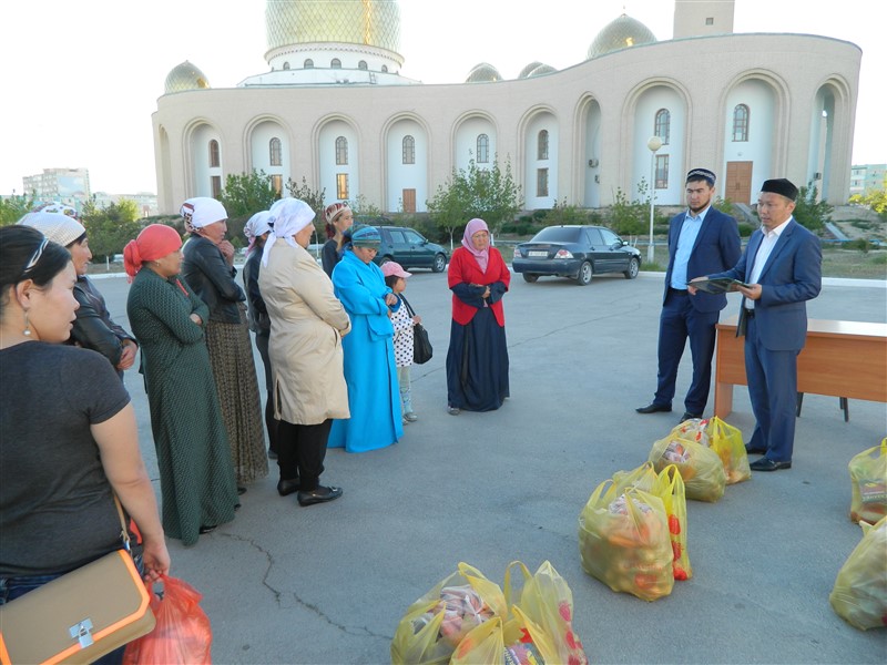 Маңғыстау облыстық орталық мешіті «Отан отбасынан басталады» атты қайырымдылық шарасы аясында жағдайы төмен отбасыларға азық-түлікпен қайырымдылық ұйымдастырды. Өкіл имам С.Сейтбеков көңілдері жабырқаулы жандарға өмірдің түрлі сынақтарына сабыр етулерін айта келіп, жасалып жатқан шара қайырымды жандардың демеушілігімен ұйымдастырылғанын тілге тиек етті.
