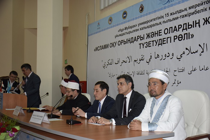 Ал «InterContinental Almaty» қонақ үйінде 300-ден аса адамның басын қосқан Халықаралық конференцияда Қазақстан тарапынан ҚМДБ төрағасы, Бас мүфти Ержан қажы Малғажыұлы, ҚР Мәдениеті және спорт вице-министрі Марат Әзілханов мырзалар қатысып, «Нұр-Мүбарак» университетінің еліміздегі діни тұрақтылық пен бірлікті дамытуға орны, діни мамандарды даярлаудағы маңызына жан-жақты тоқталып өтті. Нәтижесінде екі жақты ұсыныс-пікірлерді ортаға сала келе, арнайы қорытынды жасалып, Нұр-Мүбарак университетіндегі конференцияға қатысушыларға таныстырылды.