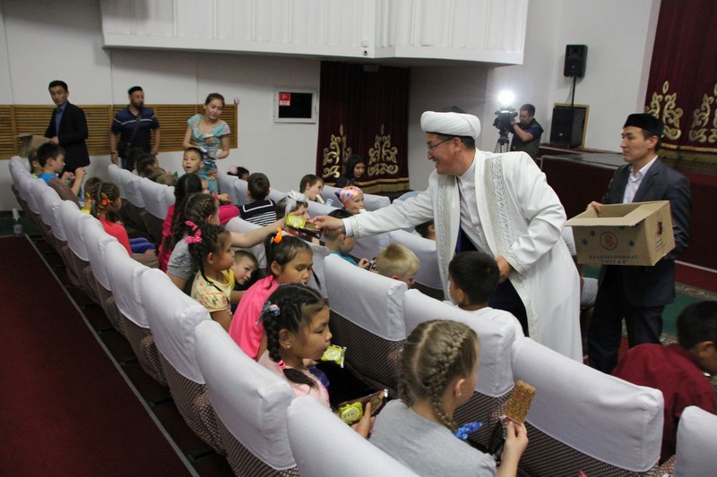 «Айналайын» балалар үйінің тәрбиеленушілеріне арнайы екі лимузин қызмет жасап, қаланы қыдыртқан соң, «Б. Римова» атындағы драма театрында аталмыш балалар үйінің бүлдіршіндеріне және көп балалы жанұяларына «Алдар көсе» атты көрсетілімі қойылып, балалардың көңілін көтерді. Қойылым соңында өкіл имам сәбилерге балмұздақ және тәттілер таратып, көңілдерін аулады.