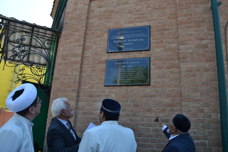 Қасиетті рамазан айынын карсаңында КМДБ-ның БҚО бойынша өкіл имамы Руслан Султановтын бастамасымен Орал қалалық мешітінің қабырғасына ұзақ жылдар бойы имамдық қызметін атқарған Тажиден Батырұлының естелік тақтасы орнатылды. Ашылу салтанатына облыс, қала имамдары мен орталык мешітінің "Ақсакалдар" алқасының мүшелері, Орал қалалық ардагер кеңесінің төрағасы, Тажиден Батырұлының ұрпактары мен арнайы қонақтары қатысты. Салтанатты шарада өкіл имам Руслан Султанов сөз алып, Орал мешітінің бас имамы кезінде ел-жұрт арасында биік абырой мен жоғарғы беделге ие болган. Бұл кезде Тажиден Батырұлының күш-жігері мен бас қызметі исламнын рухани кұндылыктарын сактауға, оны кайта жақсартуға жұмсады. Осындай еңбегін бағалай отырып ҚМДБ-ның 2016 жылғы 11 қантардағы шешімі бойынша Орал мешітін Тәжиден Батырұлынын есімін иеленді, деп қуанышты хабарды жеткізді. Одан кейін Орал қалалык ардагер кеңесінің төрағасы "Тәжиден Батырұлы атейстік қөзқарас алға ұстанған кеңестік кезеңін өзінде исламның ең таза дін екеніне көпшіліктін көзіне жеткізе білді. Дәл осы кезенде СОКП Орталык Комитетінің" Келушілер аз болуына байланысты мешіттерді жабу туралы" айгілі қаулысы жариялаған еді. Сол сәтте де ол діни нанымдағы өз ниеттестерімен бірге табандылық таныта білді. Сөйтіп Тажиден Батырұлы өз ұстанымын дәлелдеп Орал мешітін жабылу қаупінен сақтап қалды " деп еске алды. Тажиден Батырұлын ұрпактары ардакты әкенің тағлымын көпшілік айтып, қамқорлыгын, білім алуға күш қайрат жұмсатуға үйретті деп әкеге сағыныштарын жеткізді. Шара соңында имам Тажиден Батырұлын ескерткіш тақтасы өз қызмет еткен мешітке орнатылды.