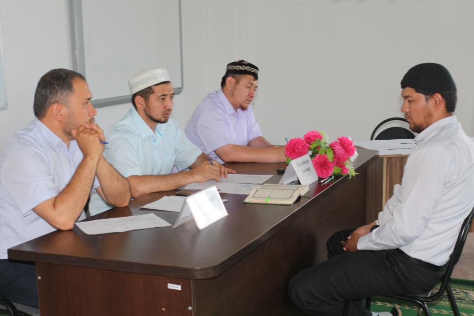 Аталмыш емтиханды мемлекеттік аттестаттау комиссиясының төрағасы «Һибатулла Тарази» медресесінің директоры Данияр Жұмабаев, «Сарағаш» медресесінің ұстазы Нұралы Төребеков, «Сарағаш» медресесінің ұстазы Еркін Қадыров қабылдады.