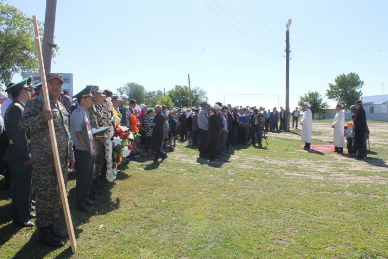 Елімізді жанқиярлықпен қорғау, халқының тыныштығын күзетe жолында жанын пида еткен есіл ермен қоштасу рәсіміне облыс басшысы Алтай Көлгінов пен ҚМДБ-ның БҚО бойынша өкіл имамы Руслан Сұлтанов арнайы келіп, марқұмның анасы Гүлжиянға, жұбайы Нұрсұлуға және ағайын-туыстарына көңіл айтты.