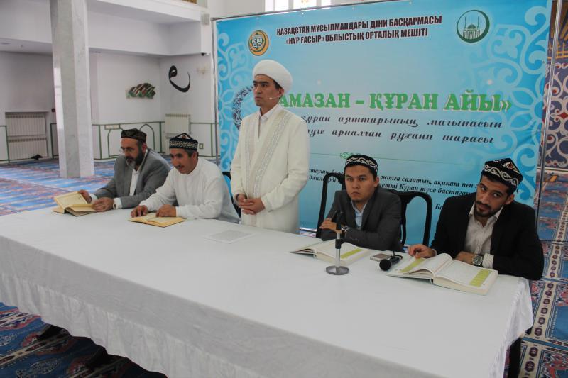 Бүгін, жұма күні, «Нұр Ғасыр» облыстық орталық мешітінде «Рамазан – Құран айы» атты рухани іс-шара өтті. Шара барысында Түркиядан келген Дашкыран Мурад, Тикен Қиям, Кылыч Ахмад және алматылық Мансур Инаятулла қарилар Құран Кәрімнің кейбір сүре, аяттарын нақышына келтіре (ашыр) оқыды. Өкіл имам Төлеби Оспан оқылған аяттардың қазақша мағынасын айтып, кеңінен түсіндіріп отырды.