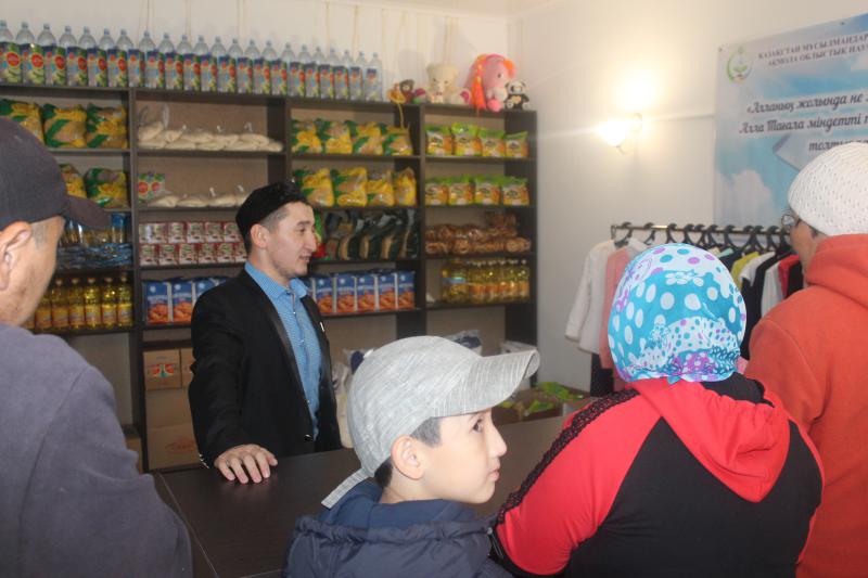 Міне, мешіт жанындағы қайырымдылық дүкені өмірден қағажу көріп, қиындық кешіп жүрген жандарға азық-түлік пен киім-кешекті тегін үлестіреді. Бұған жергілікті кәсіпкерлер де өз демеушіліктерін көрсетуге ынталы болып отыр. Қазірдің өзінде күніне 200-ге тарта бөлке нан және азық-түліктің барлық түрлері арнайы тізім бойынша берілуде.