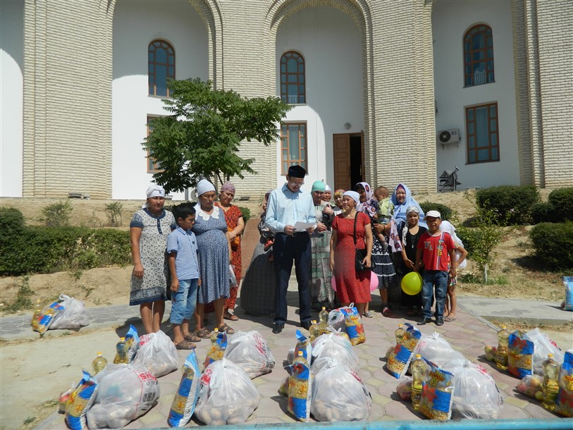 Маңғыстау облыстық орталық мешіті демеушілердің көмегімен үнемі қайырымдылық шарасын жалғастырып келеді. Рамазан айы барысында көптеген жандарға қаржылай, азық-түлікпен және басқалай да қайырымдылық шаралары жасалды. Сондай шараның бірі - Облыстық мешітте тізімде тұрған отбасыларға көмек ретінде ет, азық-түлік берілді.