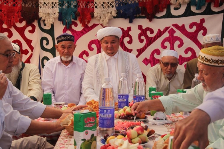 Осы күні орталық мешіт алаңында арнайы киіз үйлер құрылып айт мерекесінің құрметіне жайылған дастарханнан тұрғындар дәм ауыз тиді.