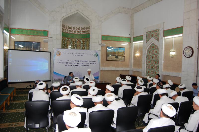 Қазақстан мұсылмандары діни басқармасы, Алматы қаласы имамдарының кезекті жиналысы болып өтті. Басқосу барысында Бас имам Нұрбек қажы Есмағанбет Рамазан айын қортындылап, Бас мүфти Ержан қажы Малғажыұлының сәлемін жеткізді.