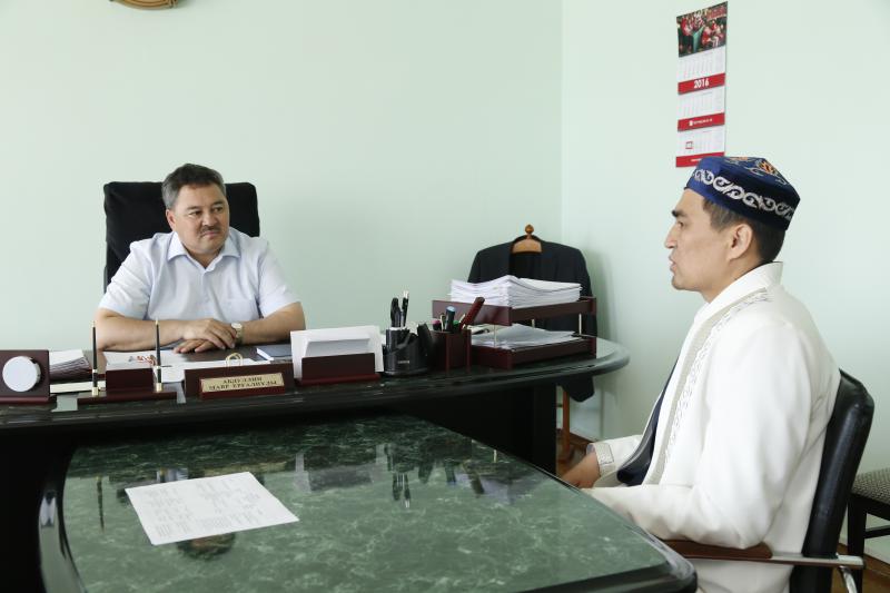 Бесін уақытында Алға аудандық және Бестамақ ауылдық мешіттердің жамағатымен жүздесіп, ел бірлігі жөнінде уағыз-насихат айтып, мешіттердегі діни сауат ашу курстарынан білім алуға шақырды.