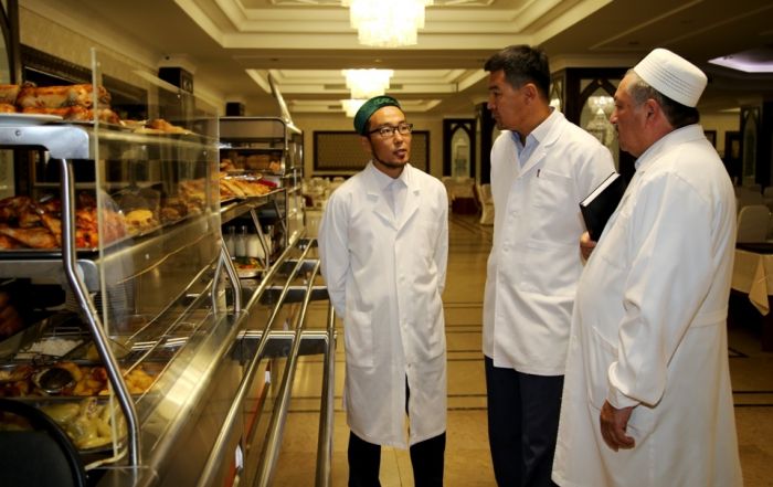 Қазақстан мұсылмандары діни басқармасының «Халал даму» жауапкершілігі шектеулі серіктестігі директорының орынбасары Әнуарбек Елжанов пен ҚМДБ «Халал өнімдерін стандарттау» бөлімінің Астана қаласы бойынша өкілі, «Төлебай» мешітінің бас имамы Асхат Сәлімов елордамыздағы бірқатар мекемелерді аралады.