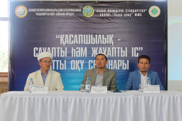 Жақындап келе жатқан Құрбан айт мерекесі қарсаңында Талдықорған қаласы орталық "Иман" мешітінде "Қасапшылық сауапты һәм жауапты іс" атты оқу-семинары өтті. Семинарға ҚМДБ "Халал даму" ЖШС-нің директор орынбасары Ануарбек Ізімбайұлы, Талдықорған өңірінің өкіл имамы Серікхан қажы Рымханұлы және қала, аудан, ауыл қасапшылары қатысты.