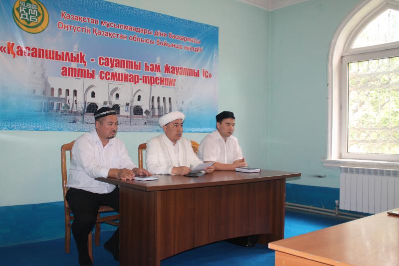 Аталмыш семинар-тренингке облыс имамының орынбасары М.Естеміров, Шымкент қалалық «А.Қаттани» мешітінің бас имамы әрі Халал бөлімінің жектекшісі Б.Абдірахманов және облыстық «Зекет» қорының орынбасары Ғ.Назаровтар қатысып, шариғат жолымен мал сою туралы дәріс оқыды.