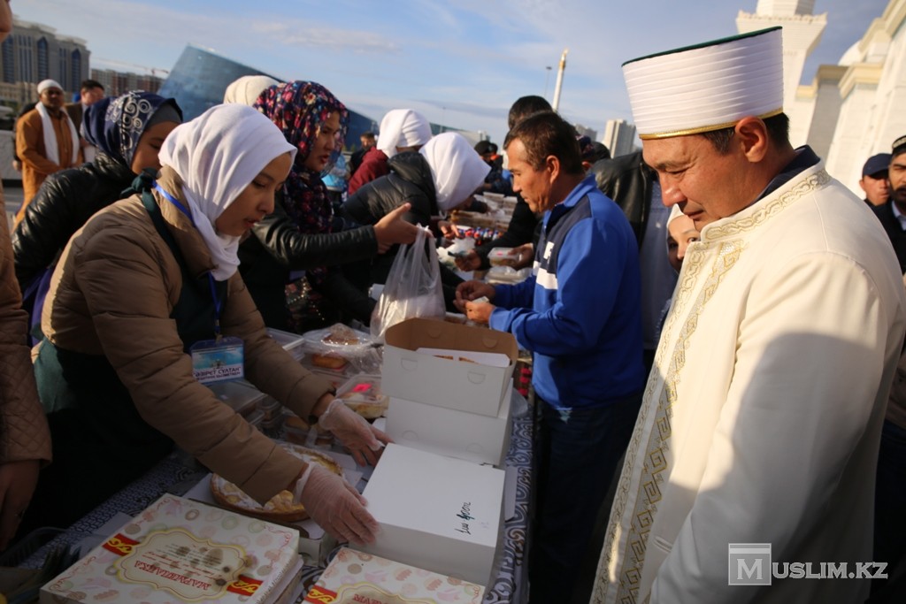 Астана қаласындағы «Әзірет Сұлтан» мешітіне жиналған мұсылман жамағаты айт намазын оқып болысымен алғашқы сауапты амалдарын мешіт ауласында жалғастырып кетті. «Әзірет Сұлтан» мешітінің әйел ұстаздары мен шәкірттерінің ұйымдастыруымен жыл сайын өтізіліп келе жатқан «Қайырымдылық жәрмеңкесі» жамағатты дәмі тіл үйірген тәттілер мен буы бұрқыраған ыстық тағамдарымен қарсы алды.
