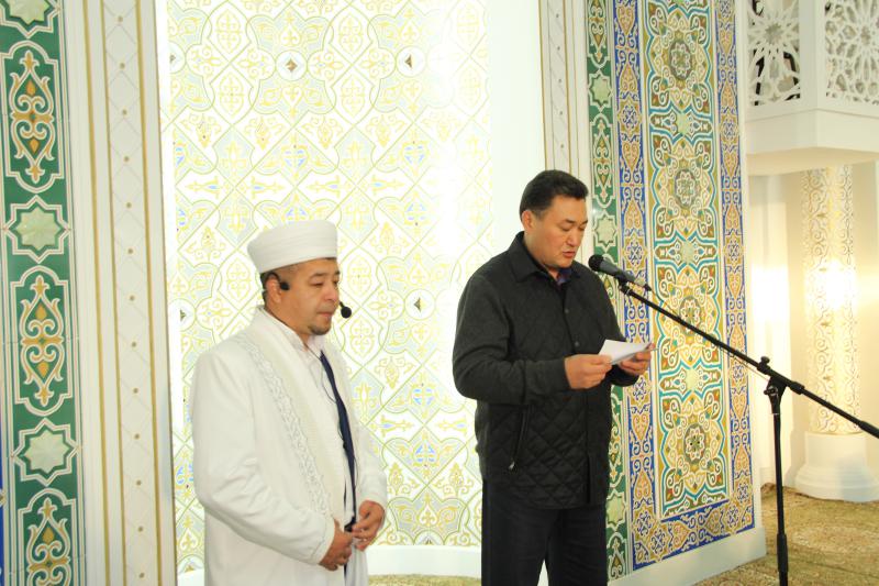 Сонымен қатар мешіт жамағатын құттықтауға арнайы келген облыс әкімі Болат Бакауов «Ислам дінінде ерекше орын алған Құрбан айт мейрамы береке-бірлік, бейбітшлік пен қоғам дамуына ықпалы зор» екенін айтты. Облыс әкімі жастардың ғинаятты, қариялардың ынсапты, әйелдердің ибалы болып, дін мен дәстүріміздің ұштаса, қоғамның оң дамуына тілегін білдірді. Құрбан айт намазында бас имам Нариман Исенов Аллаға шүкірлік айтып, такбирмен Алланы ұлықтап, еліміздің амандығын, тәуелсіздігіміздің тыныштығын тілеп, дұға етумен аяқтады.