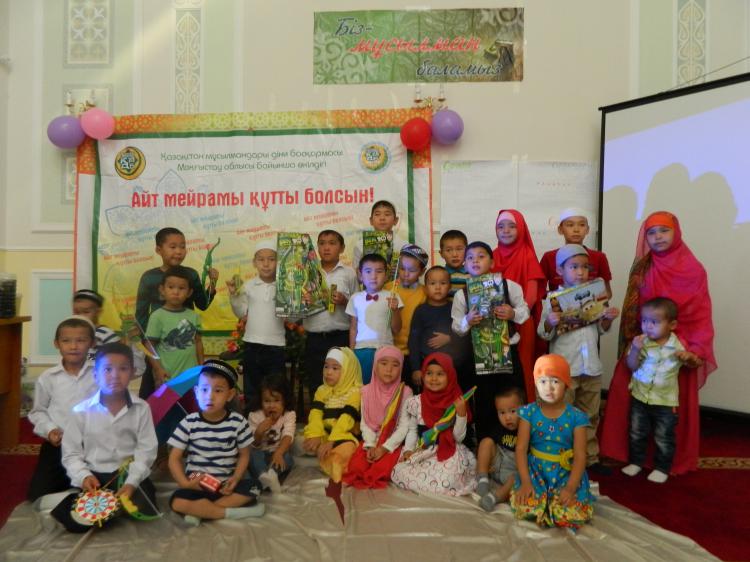 Маңғыстау облыстық орталық мешітінде балаларға арналған мерекелік шара өтті. Шара Құрбан айт қарсаңында кішкентай бүлдіршіндерге айт мейрамын сезіндіру, бір-бірімен жақын бауырмалдықта болу мақсатымен ұйымдастырылды. Мешіттің сауат ашу курсына қатысатын отызға қыз-келіншектер өздерінің тәрбилеп, мәпелеп отырған балаларының жадына имандылық пен Исламның ізгі қасиеттерін сіңіріп жатқаны байқалды. Шараға қатысқан жиырмаға жуық балдырғандар өздерінің жаттаған Құран аяттарын айтып, ұйымдастырушы әпкелері қойған жұмбақтар мен сұрақтарға жауап берді.