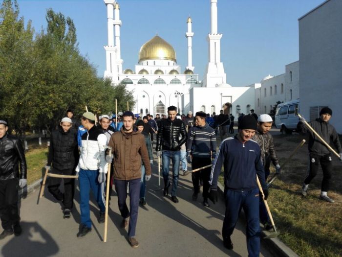 Елорданың тазалығына «Нұр Астана» орталық мешітінің ұжымы, медресе ұстаздары мен шәкірттері қатысып, игілікті іске жұмыла кірісті.
