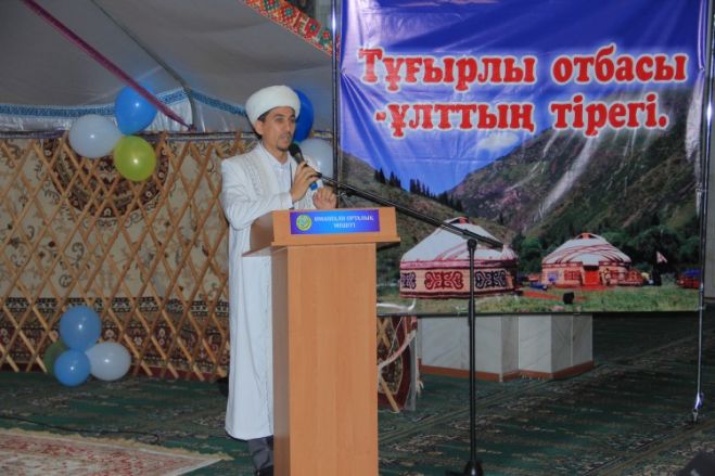 Бас имам дүние есігін өлеңмен ашқан сәбидің адам болу жолындағы кісілік сапарының түрлі салттан тұратынын айта келе, «Ислам дінімен біте қайнасқан ата дәстүр, әдет-ғұрпымыз – қандай қилы заманда да халқымыздың жадынан өшпей, ұлттық болмысын сақтап қалған баға жетпес байлығымыз. Мәңгілік елдігіміздің айғағы, шежіре-тарихымыз. Өйткені, тал бесіктен жер бесікке дейінгі адам ғұмыры оттың басынан бастау алып, сол жерде өсіп-өнеді десек, оның адам болу жолындағы әр қадамы ел назарынан тыс қалмаған. Бұл – тектілікті ту еткен дана халқымыздың бала тәрбиесін адам тәрбиесіне балаған көрегенділігінің айғағы», - деді. Және Батыржан Берденұлы өзі бастап мешітке қадам басып келген жас жұбайлардың некесін қиып, ақ батасын берді.