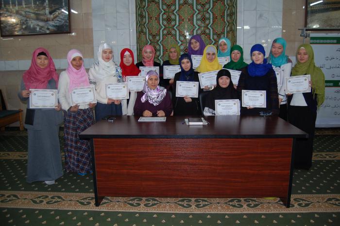 Көктем басында Құран кәрім, фиқһ, ақида сабақтарынан білім алу курсына қабылданған 100 талапкердің арасынан 30 шәкірт кезекті оқу курсының 1-ші деңгейін сәтті аяқтады. Сертификаттарды Алматы орталық мешітінің Бас ұстазы Талғат Дайрабайұлы және Алматы қалалық «Әйелдер-қыздар» секторының жауапты өкілі Маржанқыз Оразбайқызы табыстады.