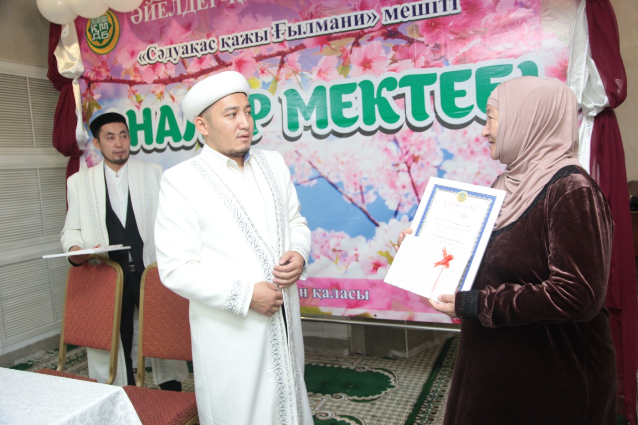 «Аналар мектебінің» бірнеше жылдан бері әр апта сайын Құранды басынан аяғына дейін екі рет толық оқып, хатым дұғасын жасап отыруды үрдіске айналдырған. Сауапты игі іске атсалысып жүрген «Құран хатым» тобының шәкірттеріне мешіттің бас имамы Руслан Нақыпбекұлы алғыс хаттар мен сыйлықтар табыстады.
