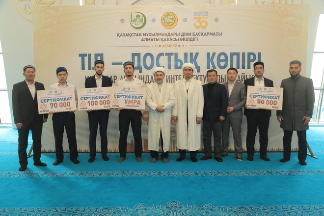 Тілдік білім деңгейі мен сөз өнерінде ерекше көзге түскен Наурызбай ауданына қарасты «Нұр» мешітінің ұстазы Мұхаммедәмин қари Басиев бас жүлдені қанжығасына байлап, Ұмра қажылығына жолдама алды.