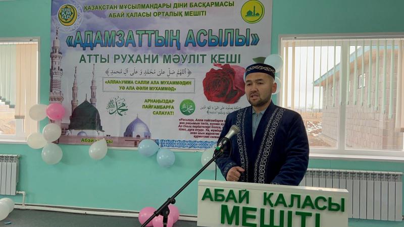 Құран аяттарын оқуымен басталған рухани шарада Абай аудандық мешітінің имамы Асхат Қанайұлы жиналған жамағатты қасиетті мерекемен құттықтады.