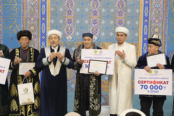 Онлайн түрде өткізілген бата беру сайысы Алматы Орталық мешітінде қасиетті жұма қарсаңында қорытындыланды. Әділ-қазылар сайысқа қатысқан 22 ақсақалдың батасын тыңдап, батаның мазмұны, орындау шеберлігі, жатқа айтуы мен қазақы киім үлгісі бойынша критерийлері негізінде бағаланды.