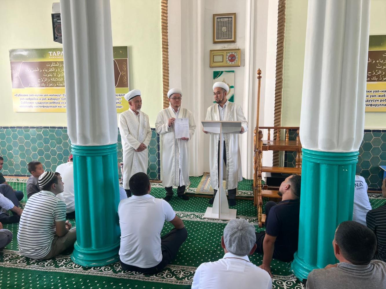 ҚМДБ Төрағасы, Бас мүфти Наурызбай қажы Тағанұлының бұйрығымен Жамбыл облысы Жуалы ауданына жаңа бас имам тағайындалды. Бұл абыройлы қызметке Есет Таласбаев бекітілді.