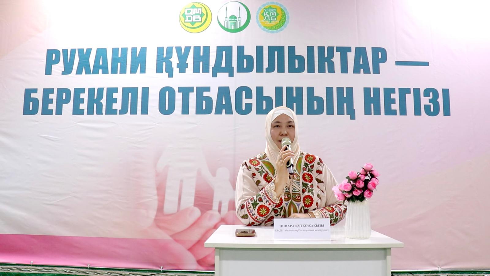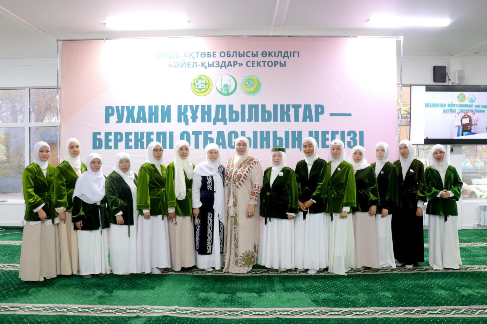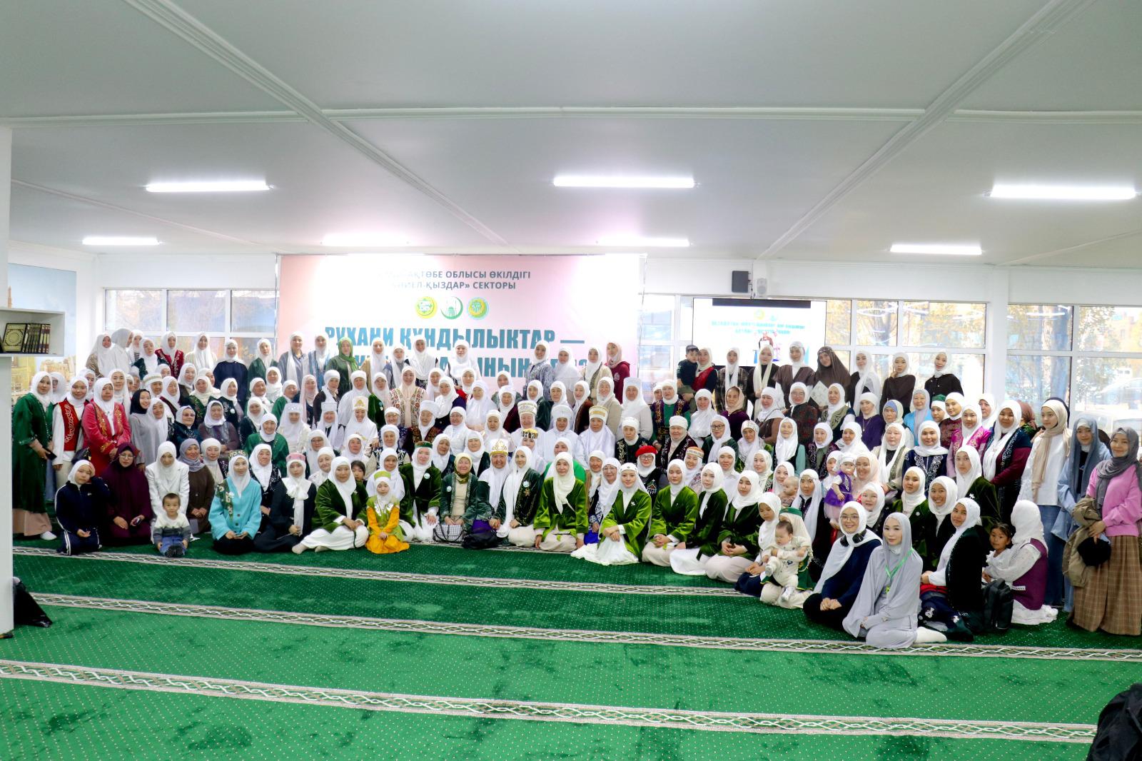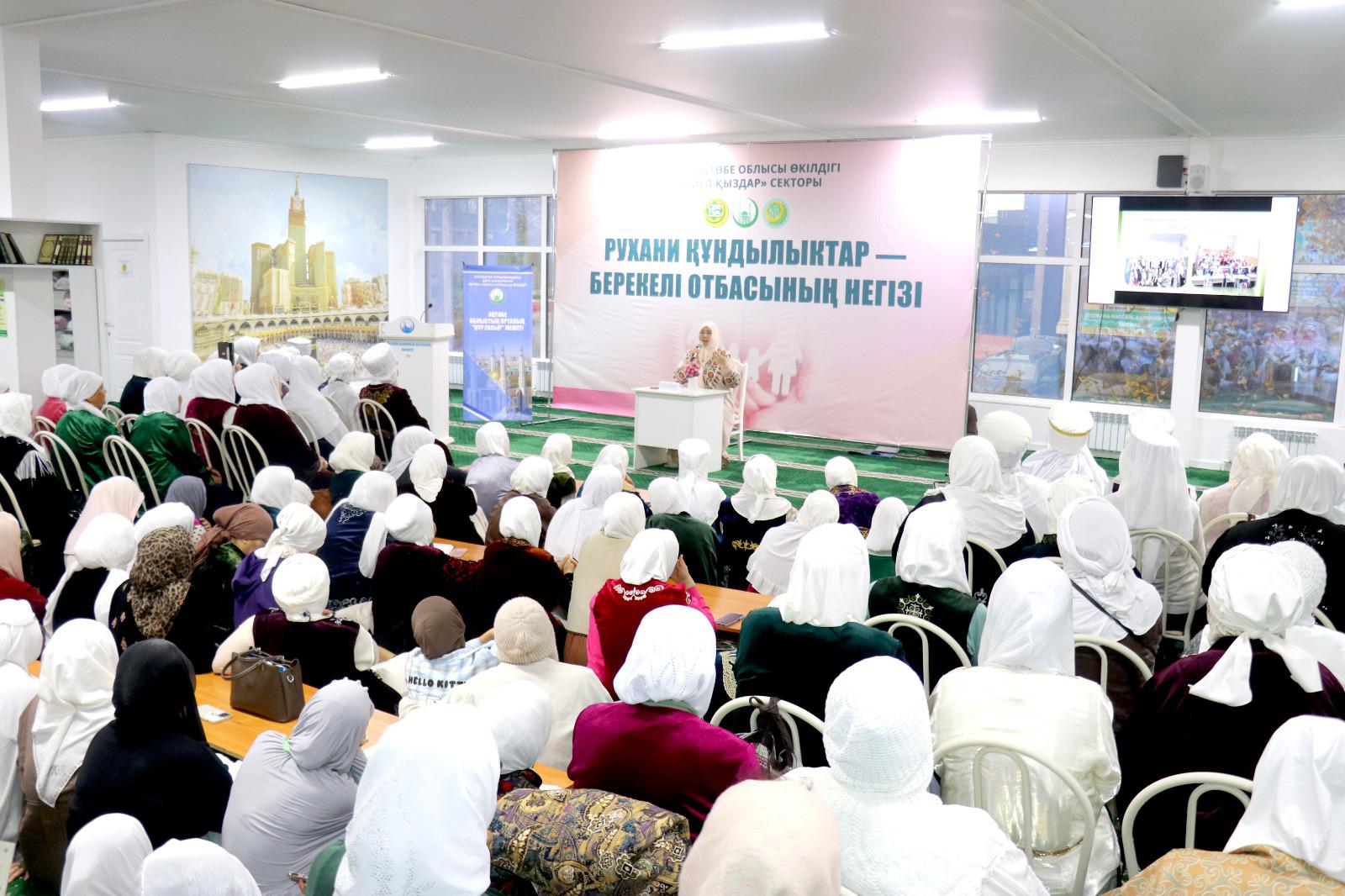 Ақтөбе қалалық орталық мешітінде өткен «Рухани құндылықтар – берекелі отбасының негізі» атты танымдық семинарда сектор меңгерушісі иманды отбасы құру, рухани тәрбие және әйел-ананың жауапкершілігі туралы баяндама жасады. Семинарға қала және аудандық мешіттердің әйел жамағатынан 200-ге жуық адам қатысты.