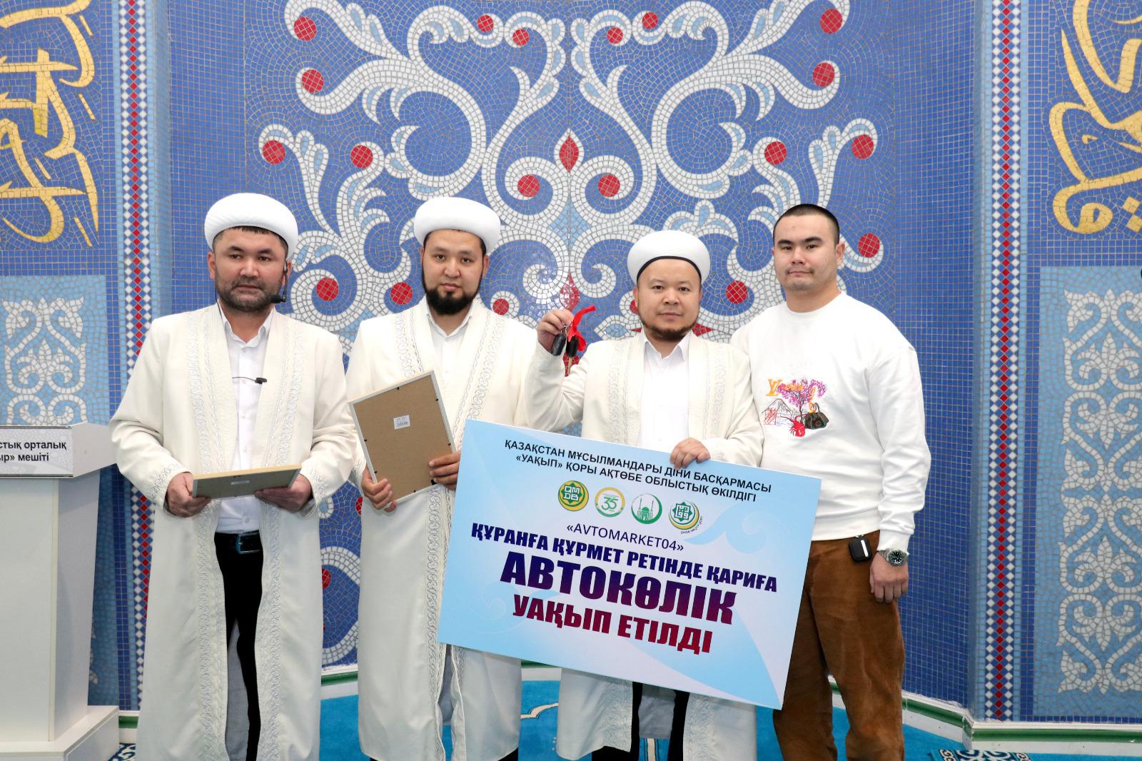 Мешітте қазір алтыншы хатым басталды. Игі іске қолдау білдірген кәсіпкерлер Әлібек Қалиұлы мен Сәбит Қуанышұлы Бекжан Әлденовке уақып ретінде автокөлік табыстады. Оларға Бас имам Амантай Садиев атынан алғыс хат берілді.