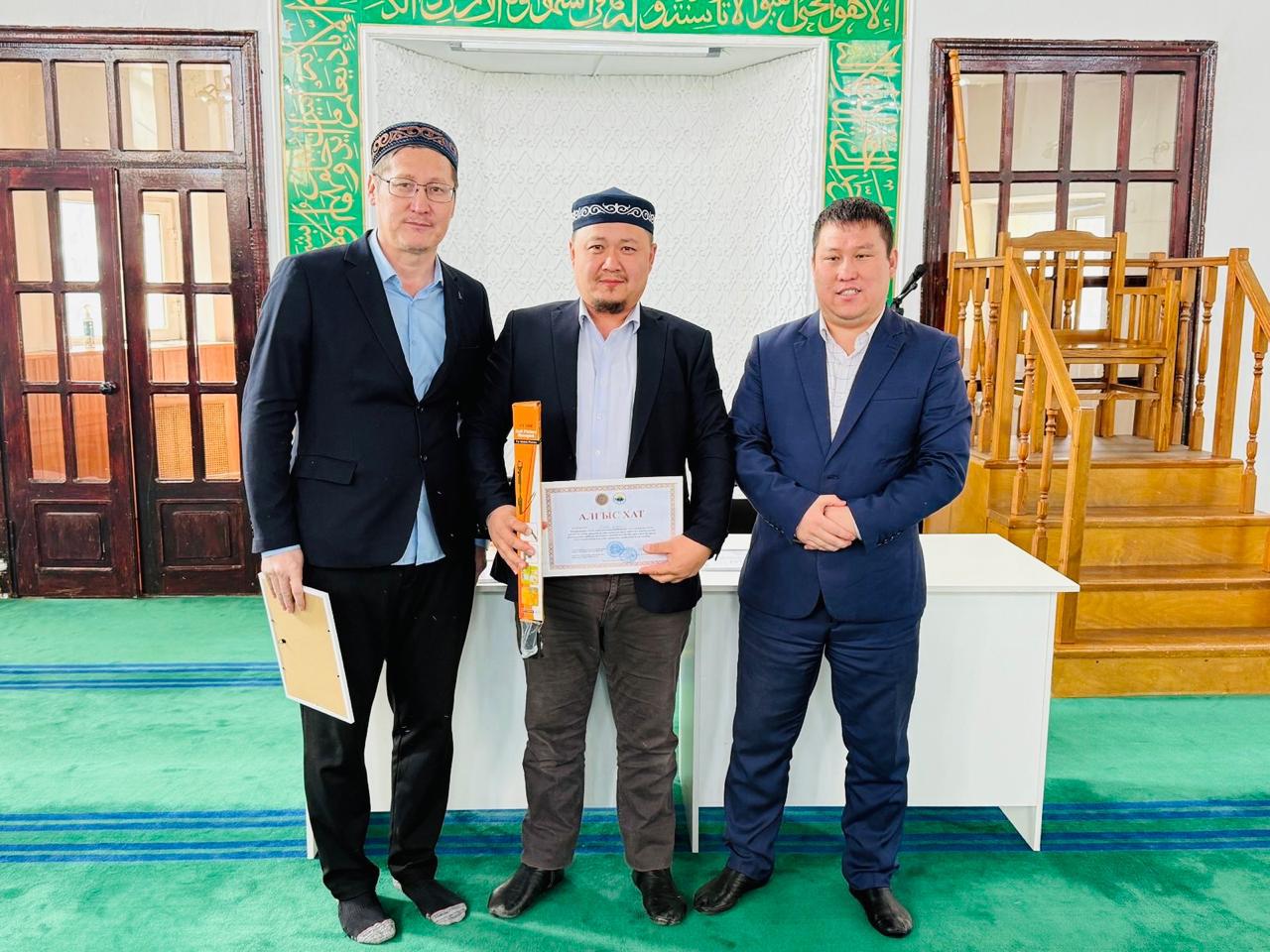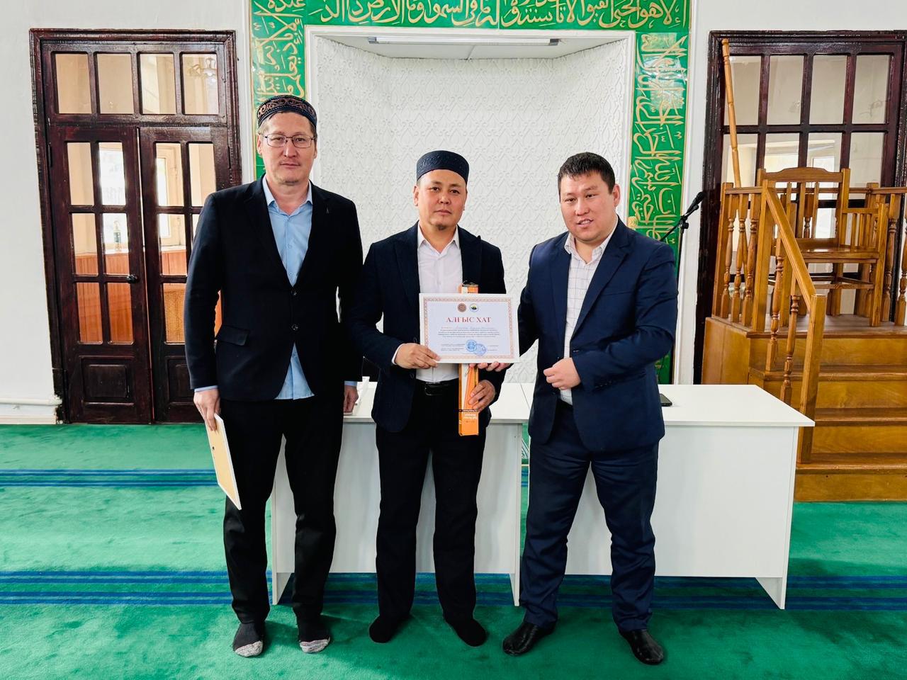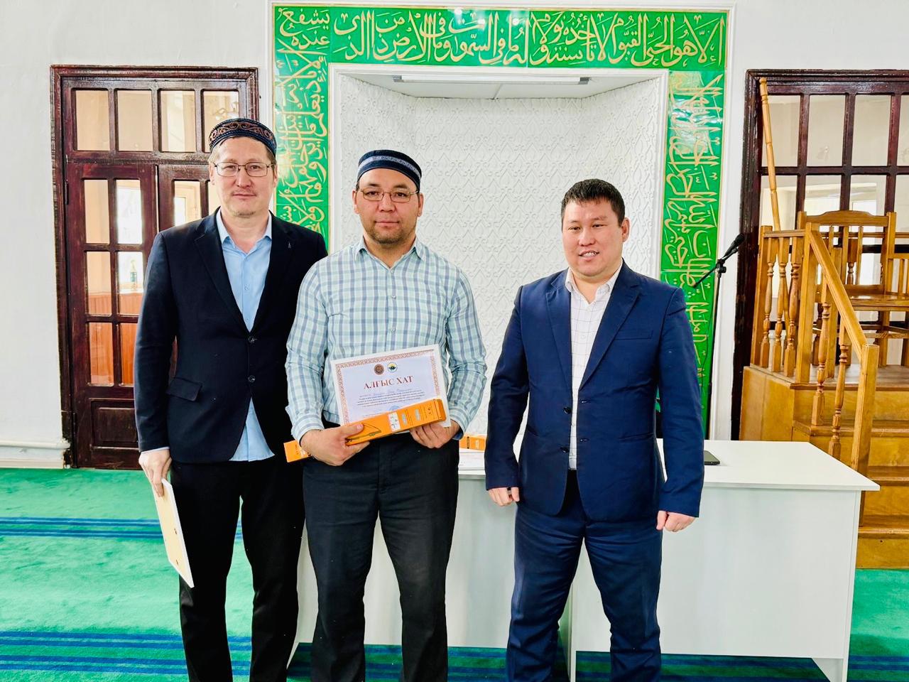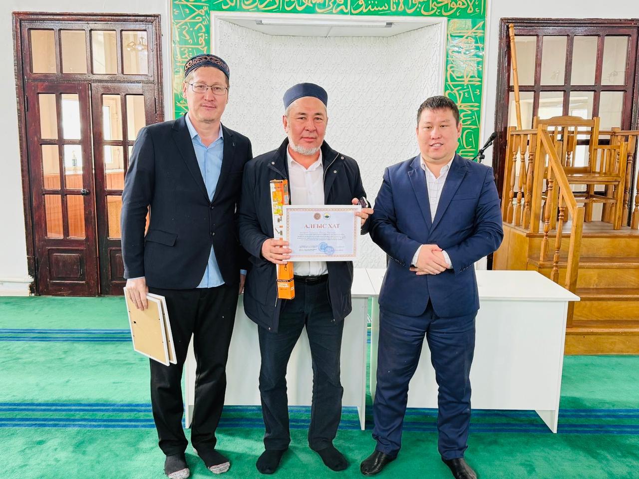 Жетісу облысы, Талдықорған қаласындағы мешіттердің дін қызметкерлерінің табанды еңбегі бағаланып, жыл соңында марапатқа ие болды. Талдықорған қаласының ішкі саясат бөлімі басшысы мен «Жетісу жастары ұйымының конгресі» төрағасының атынан 25 дін қызметкеріне Алғыс хаттар мен сыйлықтар табыс етілді.