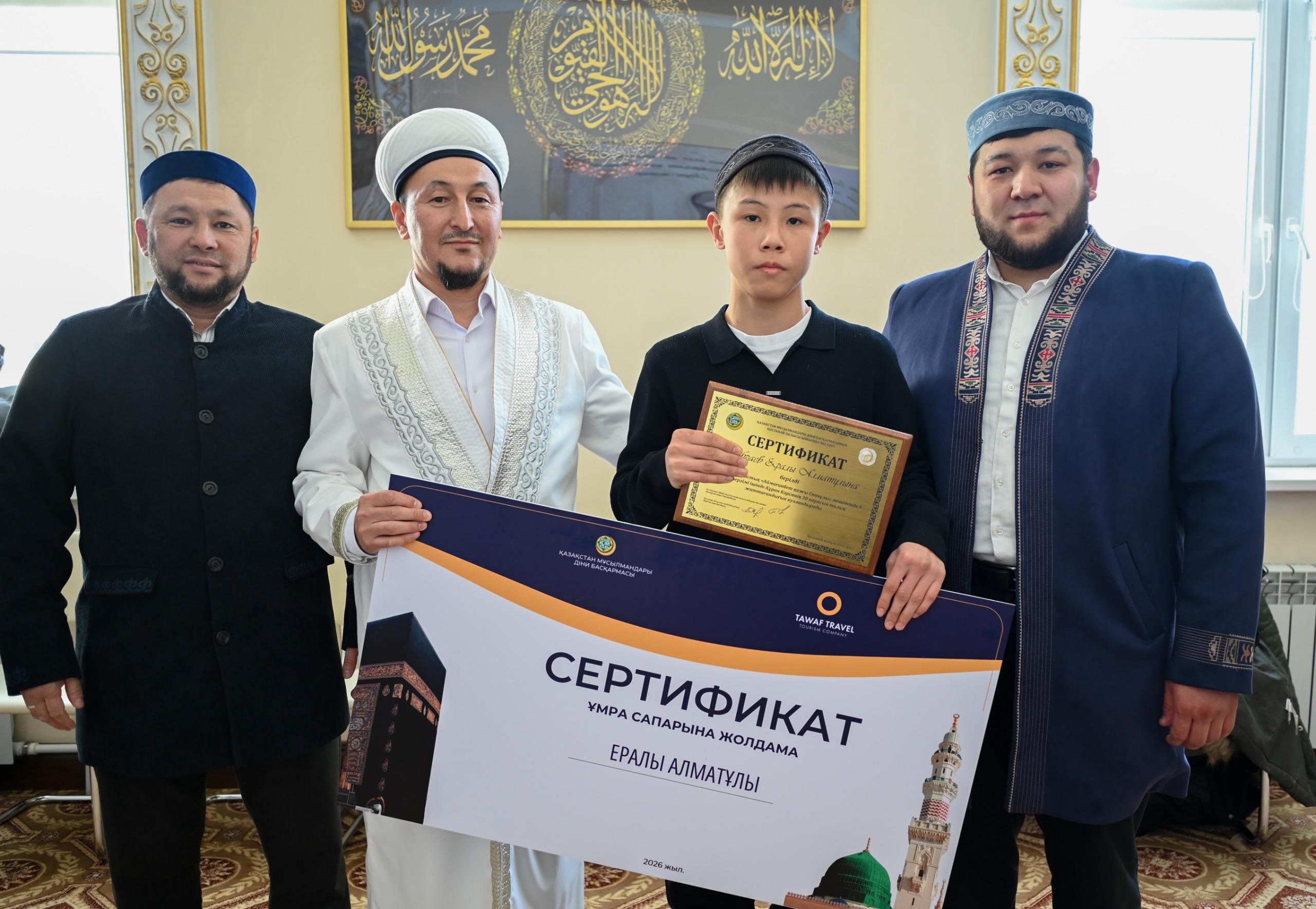 Жуырда облыстың бас имамы Бектұрсын Торғайбайұлы аталған мешітте жас қаридың медресе оқуын тәмамдағанын растайтын сертификатты салтанатты түрде табыстады. Сондай-ақ жамағат атынан Ұмра сапарына жолдама берілді.