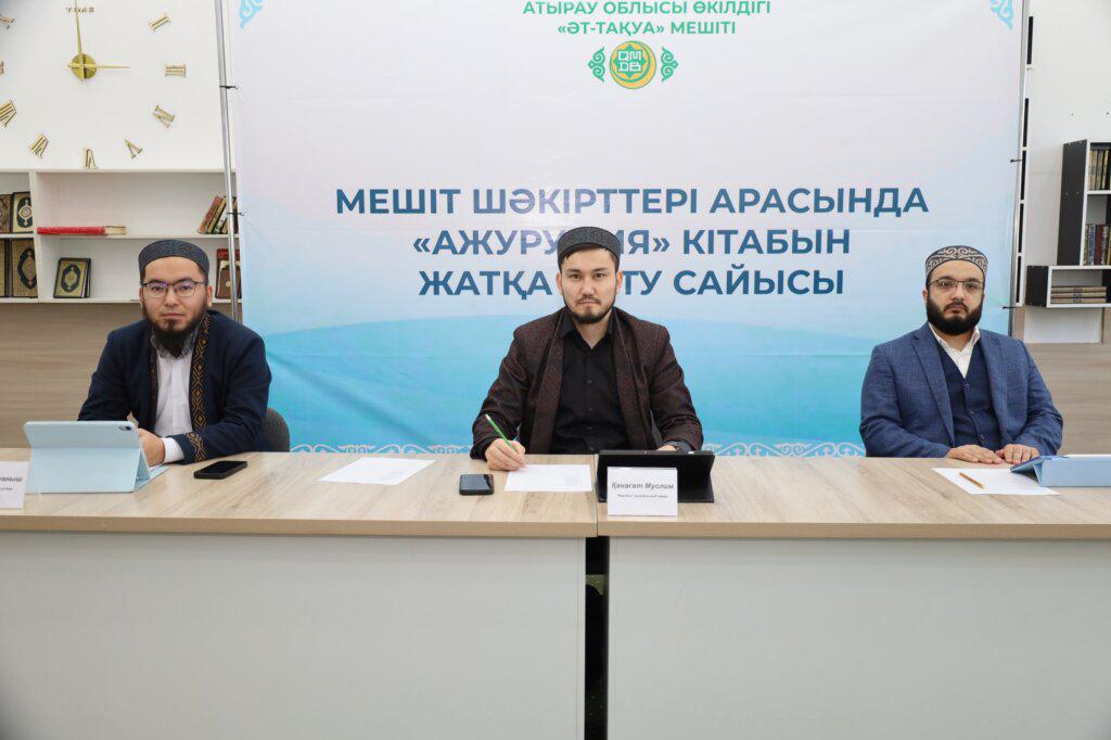 «Әт-Тақуа» мешітінде ұйымдастырылған байқауға аталған кітап бойынша тұрақты дәріс алып жүрген 22 шәкірт қатысты. Шараның ашылуында Атырау облысының Бас имамы Болатбек Ұласқанұлы қатысушыларға ізгі тілегін білдіріп, өз сөзінде араб тілін меңгерудегі «Ажурумия» кітабының маңыздылығына ерекше тоқталды.