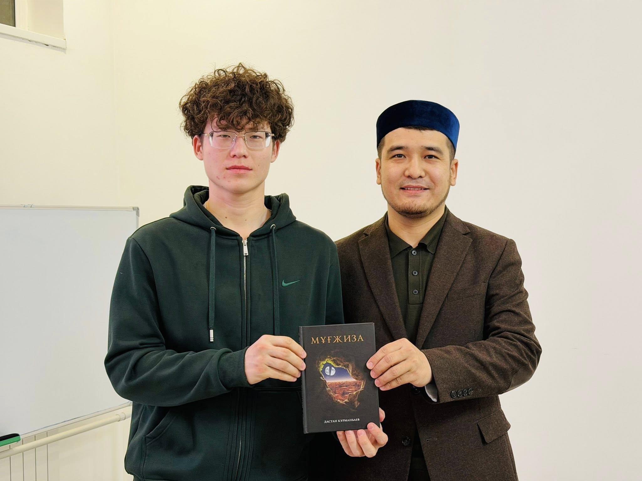 Сонымен қатар студенттер көкейіндегі сауалдарға жауап алып, дін мен дәстүр сабақтастығы төңірегінде ой қозғалды. Сұхбат соңында Дастан Құрманбаев «Мұғжиза» атты авторлық кітабын тарту етті.