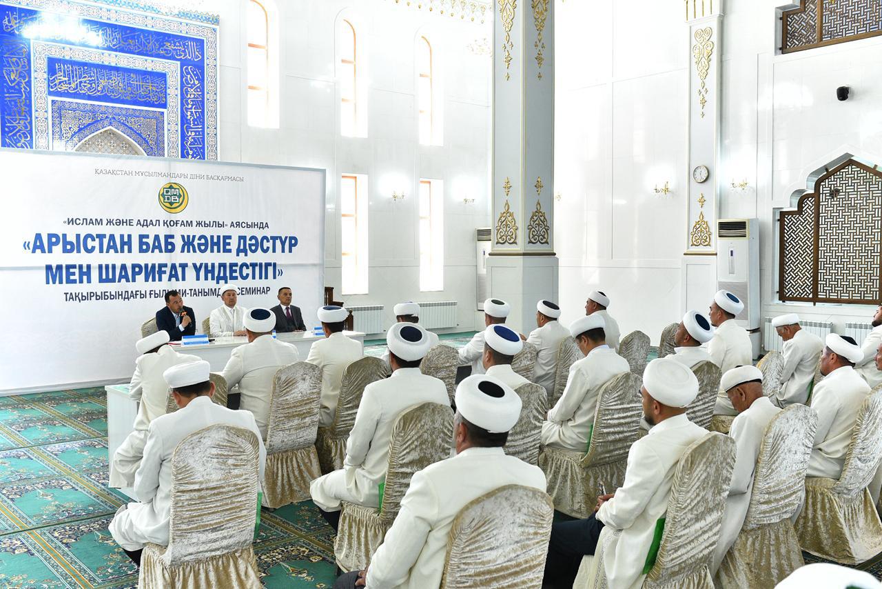 Семинарды Түркістан облысының Бас имамы Ержан Сматұлы ашып, жиынның маңыздылығына тоқталды. Ол өз сөзінде дәстүр мен діннің сабақтастығы, ұлттық құндылықтарды сақтаудың өзектілігі жайында атап өтті.