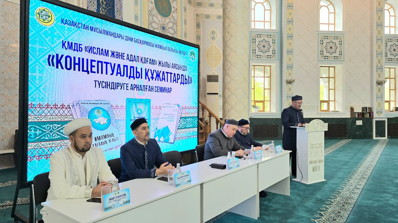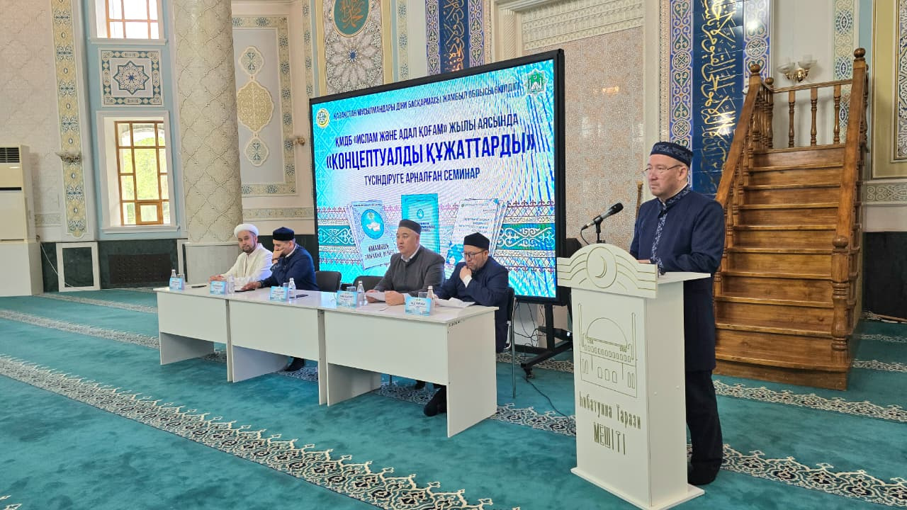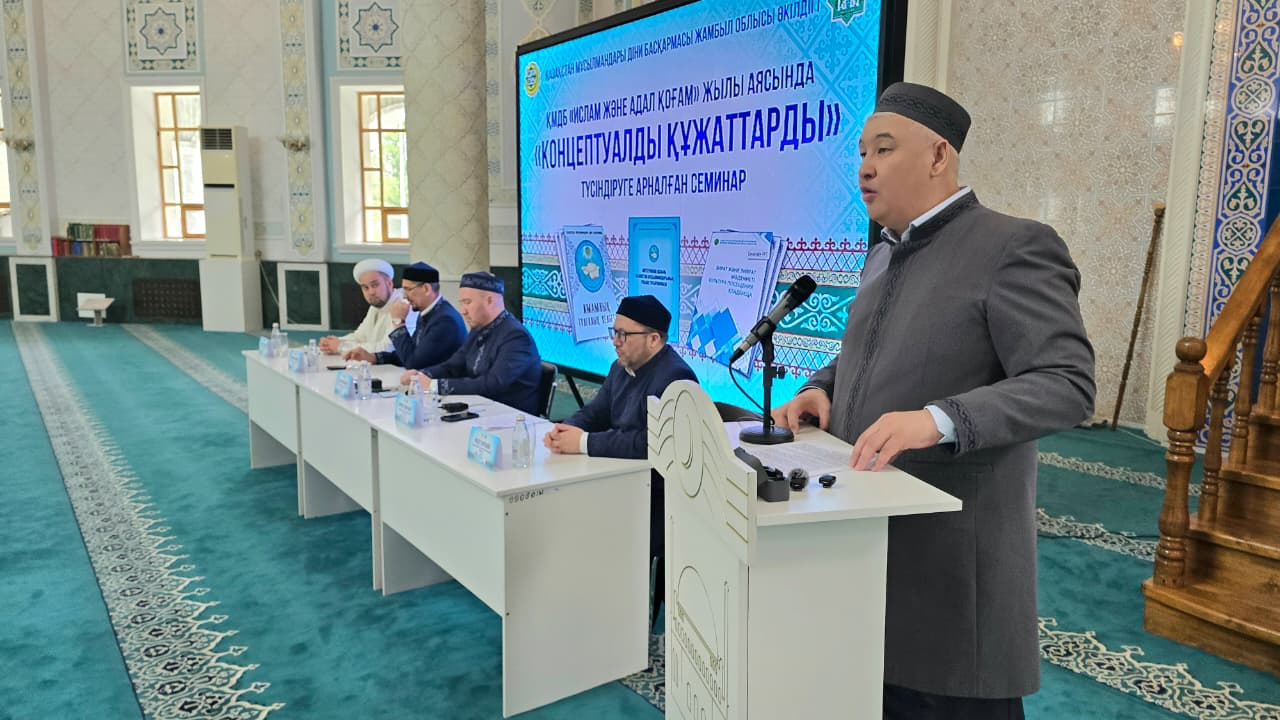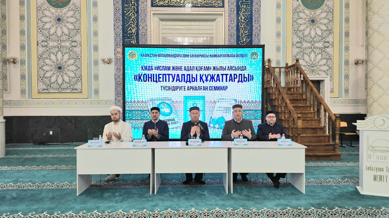 Жамбыл облыстық «Һибатулла Тарази» мешітінде ҚМДБ-ның «Ислам және адал қоғам» жылы аясында «Концептуалды құжаттарды» түсіндіруге арналған семинар өтті. Шараға облыстың Бас имамы Асқар Зәкіржанұлы бастаған қала, аудан имамдары қатысты.