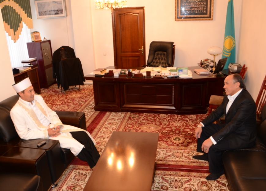 Бас мүфти Ержан қажы Малғажыұлы белгілі өнер қайраткері, дін жанашыры әнші Сәкен Қалымовты қабылдады.