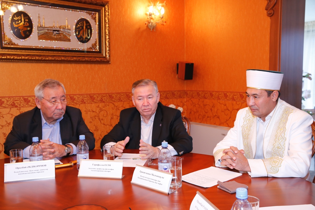 Келелі басқосуға «Ақсақалдар алқасының» төрағасы, философия ғылымының докторы, академик Ғарифолла Есім, ҚР Парламенті Сенатының депутаты Орынбай Рахманбердиев, Республикалық «Қан сонар» аңшылар қауымдастығының төрағасы Оралбай Әбдікәрім, ҚМДБ аппарат басшысы Ғылымбек Мәжиев пен ҚМДБ-ның Астана қаласы бойынша өкіл имамы Наурызбай қажы Тағанұлы қатысып, кеңес күн тәртібіндегі мәселелер бойынша әңгіме өрбіді.