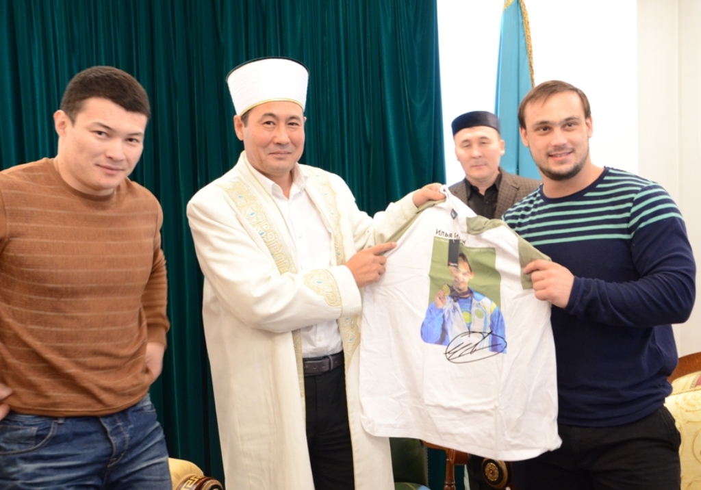 Бүгін Алматыда Қазақстан мұсылмандары діни басқармасының төрағасы Ержан қажы Малғажыұлы әлем чемпиондары – Илья Ильин мен Жасұлан Қыдырбаевты және оның бапкерлерін қабылдады.