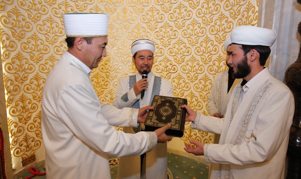 Бүгін «Әзірет Сұлтан» мешітіне жұма намазына жиналған жұртшылық алдында ҚМДБ-ның төрағасы, Бас мүфти Ержан қажы Малғажыұлы жақында өткен ІІ Республикалық «Әдемі әуезді азаншы» сайысының жеңімпазы атанған Еркебұлан Алпысұлына игі тілегін арнап, қасиетті Құран Кәрім тарту етті.