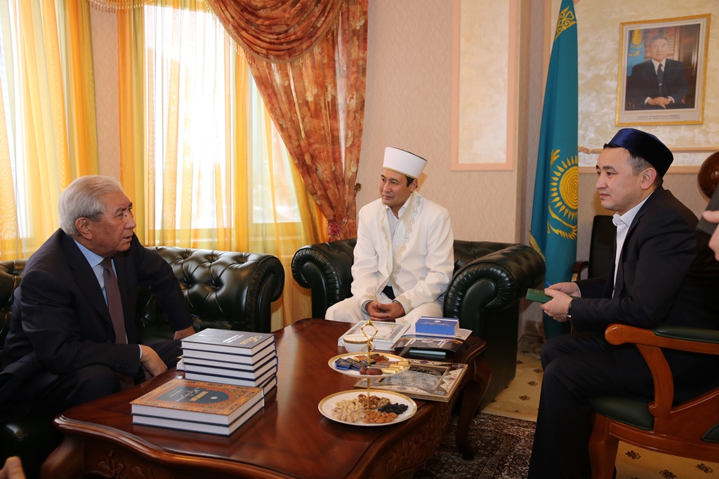 Қазақстан мұсылмандары діни басқармасының төрағасы Ержан қажы Малғажыұлы Астанада қоғам қайраткері Мырзатай Жолдасбековпен кездесті.