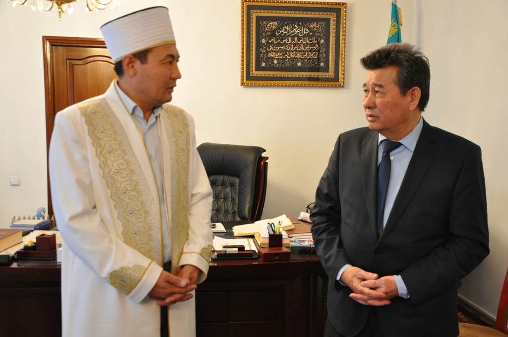 Алматыда Қазақстан мұсылмандары діни басқармасының төрағасы, Бас мүфти Ержан қажы Малғажыұлы тарих ғылымдарының докторы, профессор Мәмбет Қойгелдиевті қабылдады.