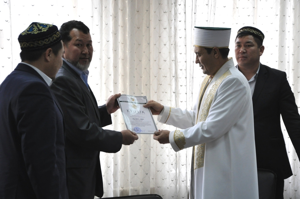 Бүгін Қазақстан мұсылмандары діни басқармасының төрғасы, Бас мүфти Ержан қажы Малғажыұлы халал өнімдерін өндіретін ЖШС «Халал сұлтан», ЖШС «Ақ ниет» кәсіпорындарының басшыларына Діни басқарманың алғашқы сертификатын берді.