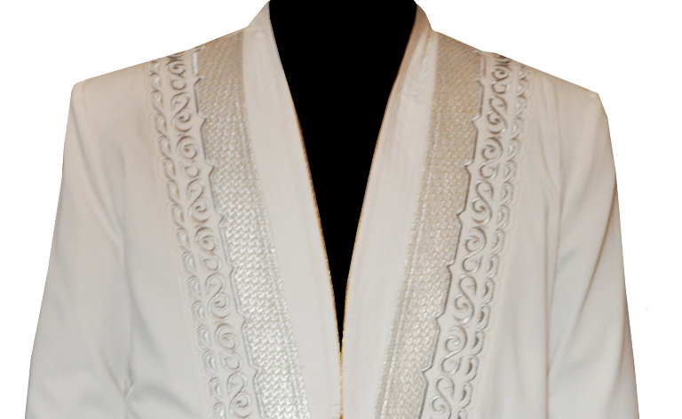 Біріншісі (1-сурет) Діни басқарманың бөлім басшылары, облыстардағы, өңірлердегі өкіл имамдар киетін шапанның жаңа үлгісі. Ол шапан үлгісінің нөмірі: 17-15; түсі – сүт түсті, кестелері күміс түсті; алдыңғы жиегі күміс түсті парчамен (аппликация) және жаны ою өрнекпен кестеленген; жағасы сырылып тігіліп, жиегіне сарғыш жылтыр мата жүргізілген; астары сүт түсті жұқа мата.