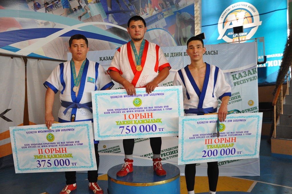 Бас мүфти Ержан қажы Малғажыұлының жүлдесі үшін ұйымдастырылған додаға өңірден іріктеліп шыққан жасы 18-ден асқан, салмағы 74 келіден жоғары 75 балуан қатысты. Сонымен халықаралық дәрежедегі төрешілер шешімімен төмендегі спортшылар жүлделі орындарға ие болды.
