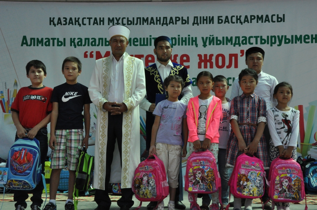 Қазақстан мұсылмандары діни басқармасының төрағасы Ержан қажы Малғажыұлының игі бастамасымен жыл сайын жаңа оқу жылы қарсаңында еліміз бойынша мешіттерде «Мектепке жол» қайырымдылық акциясы ұйымдастырылып келеді.