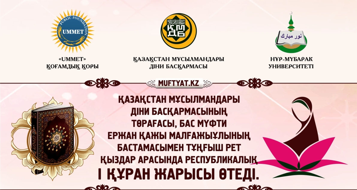 Қазақстан мұсылмандары діни басқармасының төрағасы, Бас мүфти Ержан қажы Малғажыұлының бастамасымен 2016 жылы мамырдың 5-6 жұлдызында «Нұр-Мүбарак» университетінде тұңғыш рет қыздар арасында Республикалық I Құран жарысы өтеді.