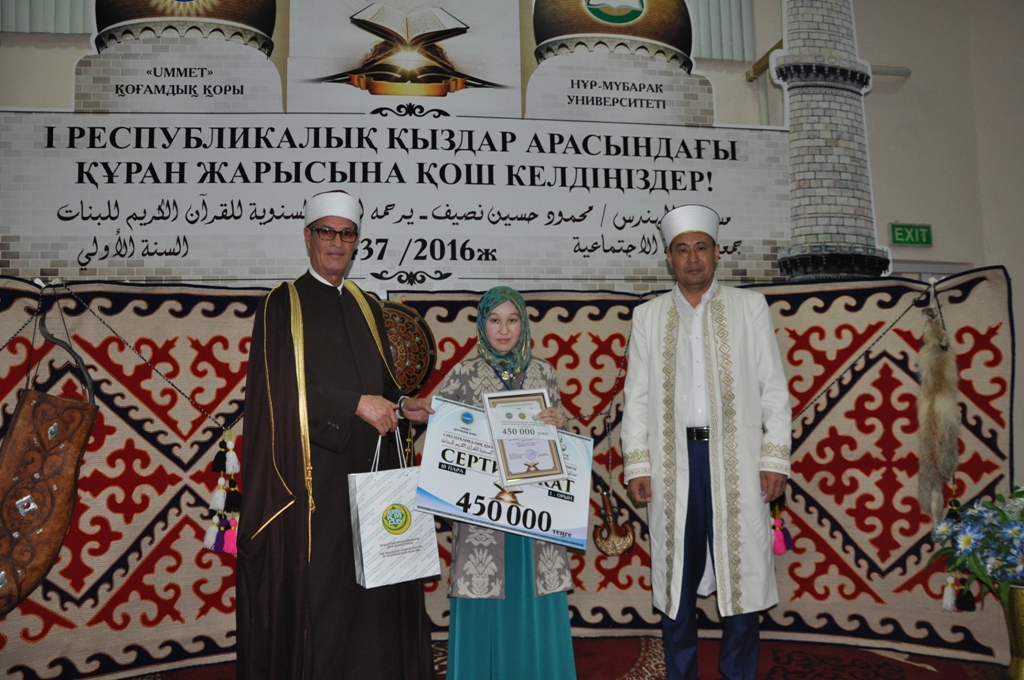Елімізде тұңғыш рет өткен республикалық Құран жарысында 10 пара бойынша Оңтүстік Қазақстан облысынан келген Айгерім Анарқұл жүлделі І орынды иеленді. Бас мүфти Ержан қажы Малғажыұлы оған 450 мың теңгенің сертификатын салтанатты түрде табыстады. Әділқазылар алқасының шешімімен Айша Ілеспек (Астана) қариға екінші орын бұйырды. ІІ орынның жүлдесі – 370 мың теңге. ІІІ орынға лайық болған Гүлзар Тұрғанжан қариға («Нұр-Мүбарак» университеті) 300 мың теңгенің сертификаты табысталды. Сонымен қатар, жарысқа қатысқан барлық қариларға қаржылай сыйлық берілді.