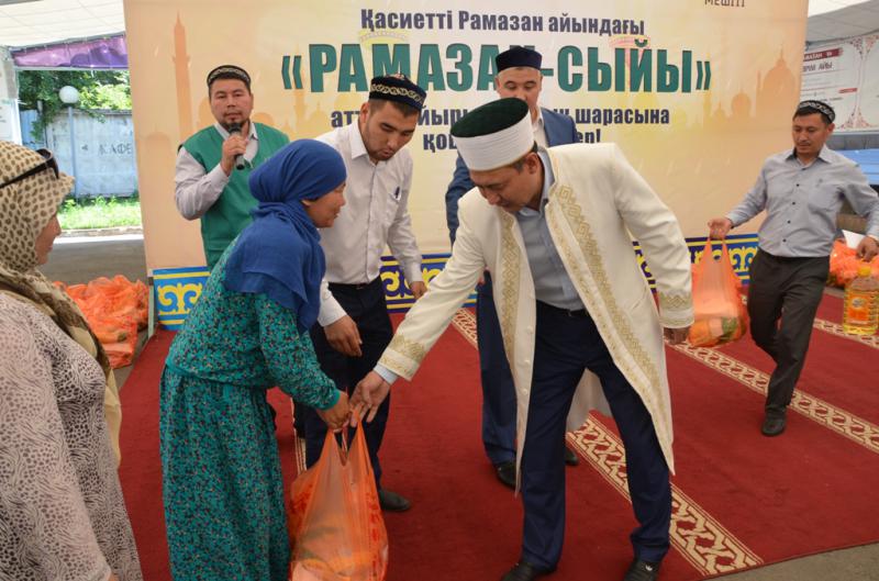 Қазақстан мұсылмандары діни басқармасы Алматыда «Рамазан – сыйы» акциясы аясында әлеуметтік жағдайы төмен отбасыларға қайырымдылық шарасын жасады. Игі шараға Бас мүфти Ержан қажы Малғажыұлы қатысып, отбасыларға азық-түлік және қаражылай мерекелік сый тарту етті.