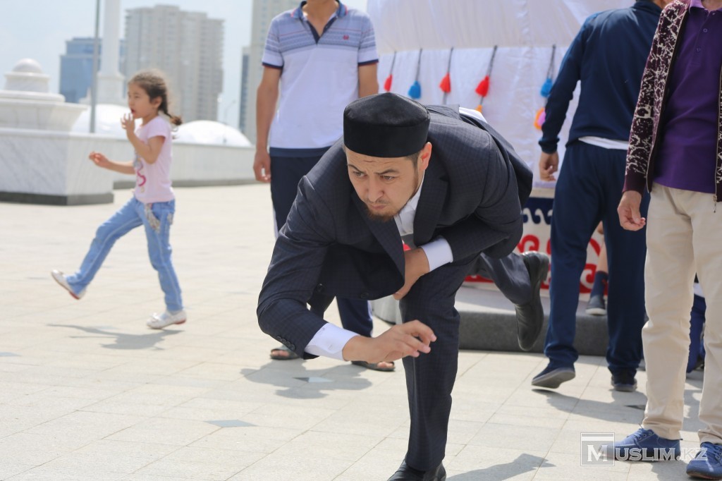 Жанкүйерлердің қызу қолдауына ие болып, намыс пен күш-қуаты сынға түскен спорты ойыны – арқан тартыс болды. Жүрегінде – Алласы, білегінде қайраты бар алпамсадай жігіттердің арқан тартысы жанкүйерлердің Аллаға мадақ айтқан ұранымен қыза түсті. Бұдан бөлек, екі салмақ бойынша қол күресі (70 келіге дейінгі және одан жоғарылар арасында) мен гір көтеру (16 келі және 24 келі) сайыстары да ұйымдастырылып, білекті жігіттердің есімі анықталды. Сайыс жүлдегерлерінің барлығына «Әзірет Сұлтан» мешіті атынан арнайы «Алғыс хат» табысталып, қашалай жүлдемен марапатталды.